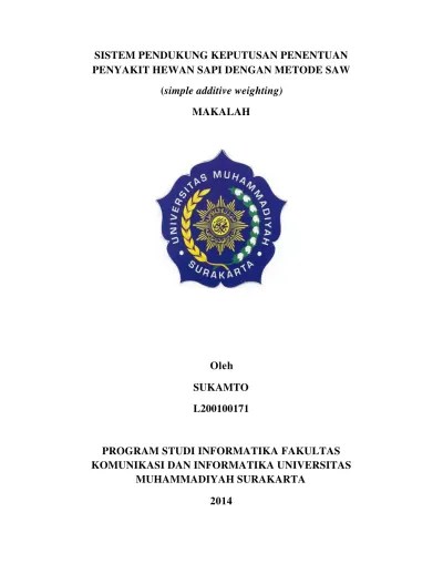 Makalah Sistem Pendukung Keputusan Metode Saw Dengan Contoh Aplikasi - Jurnal Sistem Pendukung Keputusan Menyeleksi Anggota Paskibra Dengan Menggunakan Metode Simple Additive Weighting Saw Skripsi Teknik Informatika - Disusun sebagai salah satu syarat menyelesaikan .. Metode simple additive weighting (saw). Persamaan penelitian ini dengan keempat jurnal di atas adalah menggunakan metode simple additive weighting (saw) dan membuat aplikasi sistem pendukung keputusan . Sistem pendukung keputusan kelayakan laboratorium komputer. Weighting pada sistem pendukung keputusan pemilihan rumah bagi. Tujuan dari penelitian ini adalah menerapkan metode simple additive.